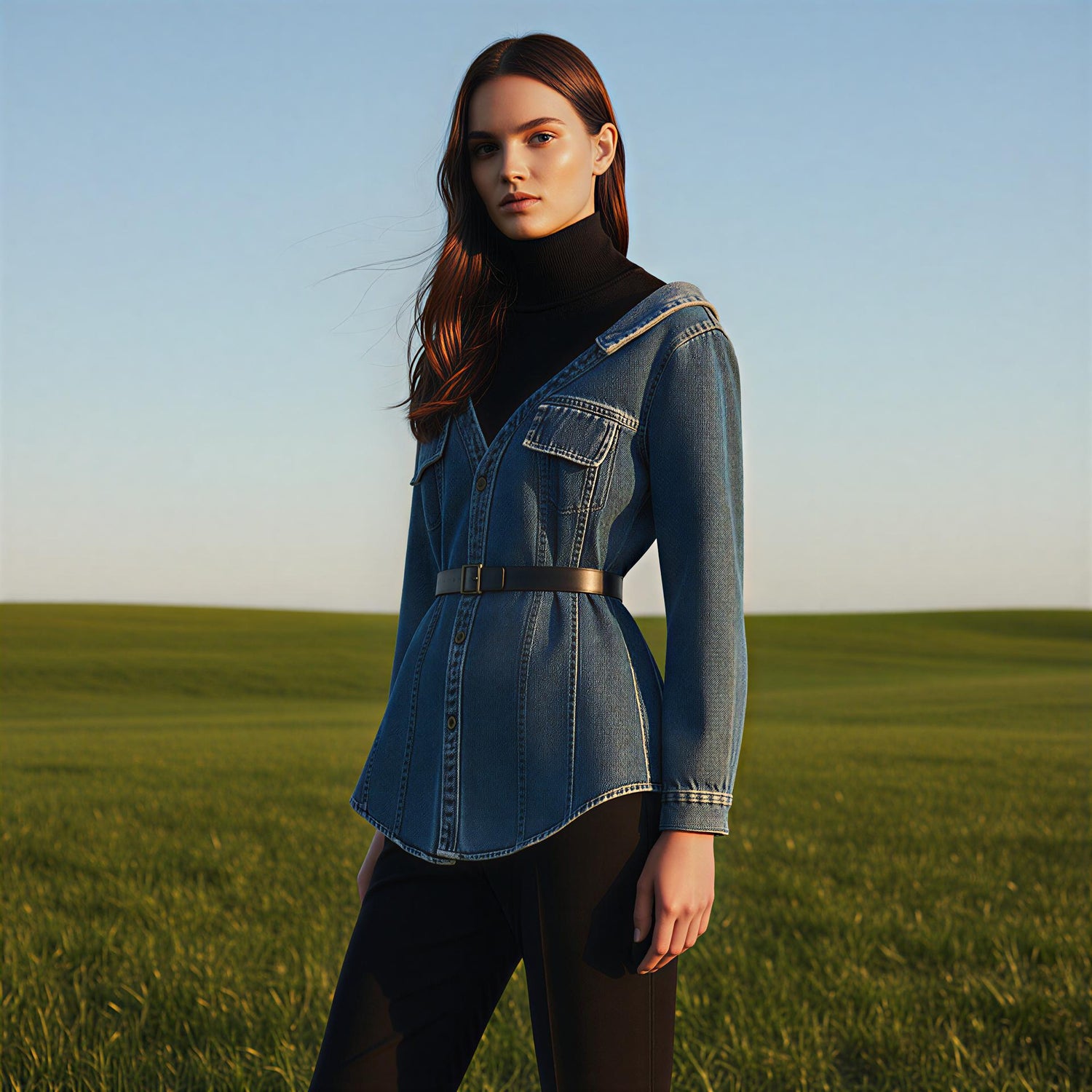 The Faux-Chinch Denim is available in a variety of sizes to suit different body types, ensuring a comfortable and flattering fit for everyone. Please check our size chart for guidance.