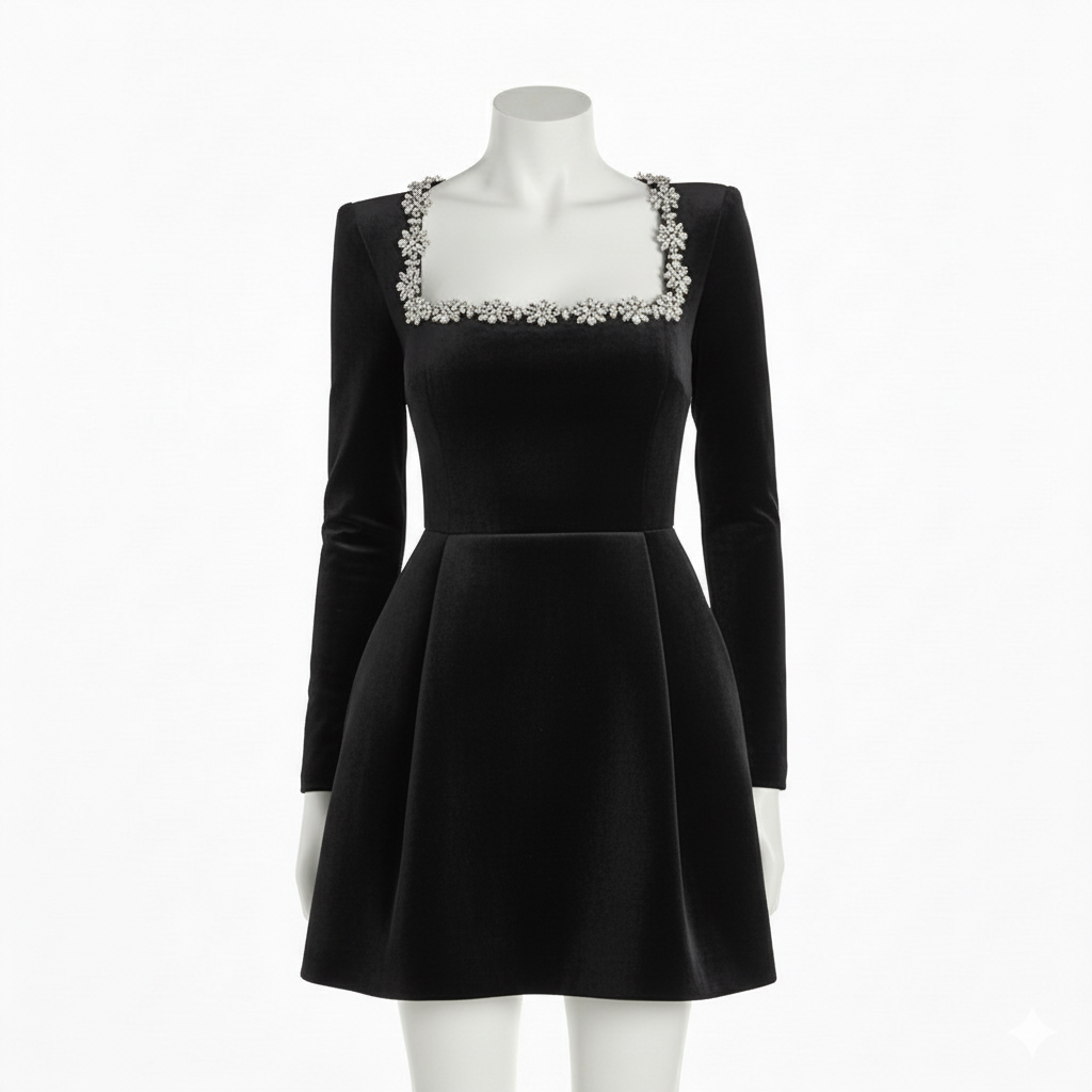 The Rhinestone Floral Elegant Dress is available in a variety of sizes to suit different body types, ensuring a comfortable and flattering fit for everyone.